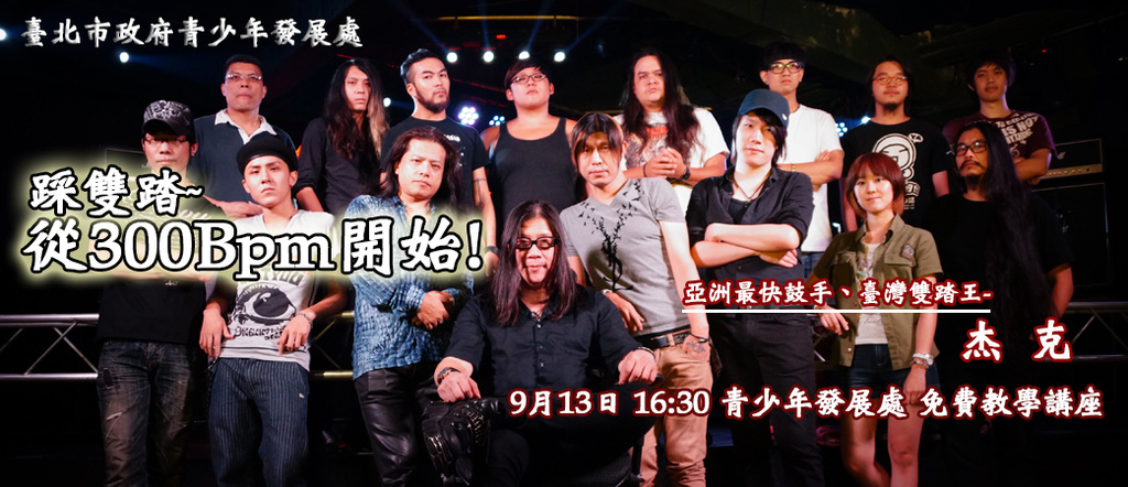 杰克老師是亞洲第一個雙踏踩過300BPM(每秒/20下單擊)的鼓手,並在2012年於代表臺灣在中國以378BPM(每秒/26下單擊)拿下全中國最快鼓手(腳)殊榮!
